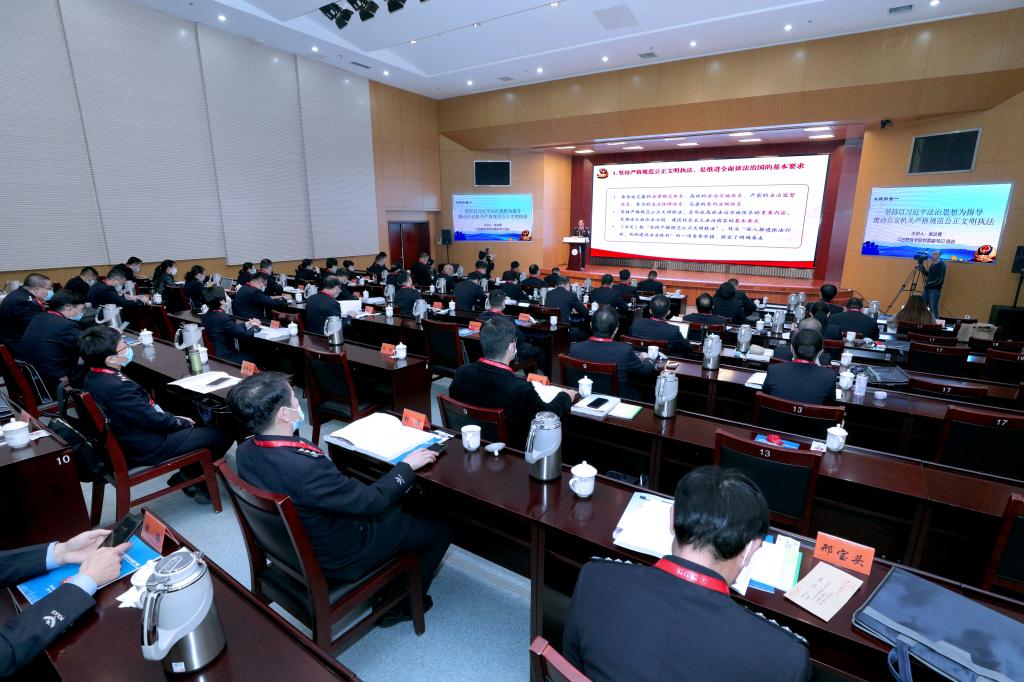省公安厅法制总队总队长秦为民作了题为“以习近平法治思想为指导,不断深化推进法治公安建设”的主题报告,认为加强法治公安建设,是公安机关学习贯彻习近平法治思想,推进全面依法治国的应有之义和实际行动,结合江苏公安法治建设实际,从学懂弄通做实习近平法治思想、健全完善公安法治标准体系、扎实抓好重点工作推进、强化法治公安建设保障等方面,提出了推进法治公安建设的理念思路。