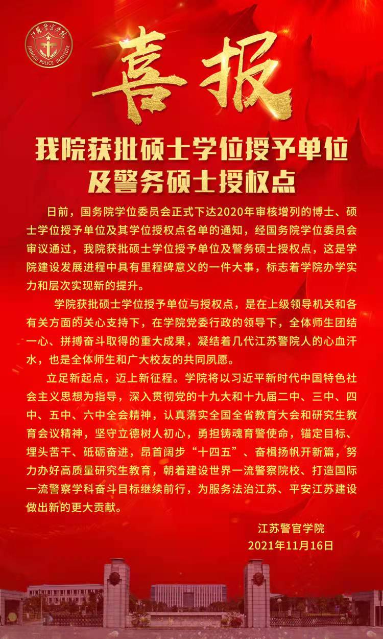 喜报:金年金官网获批硕士学位授予单位及警务硕士授权点