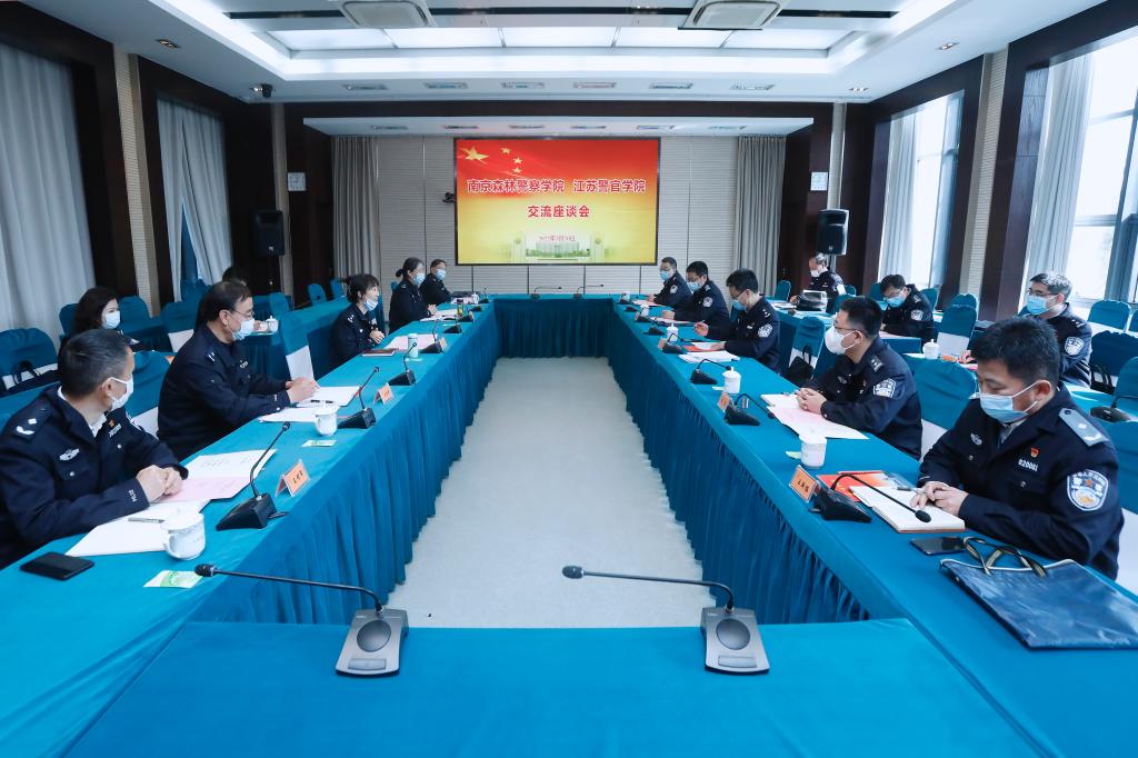 3月30日上午,南京森林警察学院党委副书记、副院长林平一行9人来金年金官网考察,省公安厅党委委员、学院党委书记夏存喜与考察团进行交流,学院党委委员、副院长黄进与考察团进行了座谈,双方就申请新增硕士学位授予单位及授权点立项建设、材料填报等工作进行了深入交流。