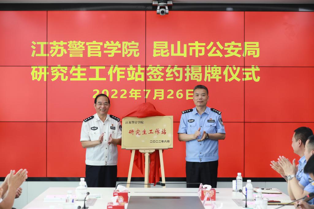 7月26日、27日,学院与昆山市公安局、常熟市公安局举行研究生工作站签约揭牌仪式。学院党委副书记、院长张兰青与苏州市副市长、苏州市公安局党委书记、局长周达清为常熟市公安局研究生工作站揭牌,与苏州市公安局党委委员、昆山市副市长、公安局长施伟华为昆山市公安局研究生工作站揭牌。