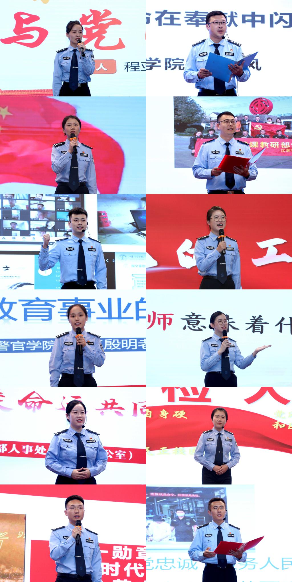 比赛现场,青年干部教师紧扣“青春献礼二十大 强国有我新征程”主题,结合工作实际,以质朴的语言、生动的事例和真挚的感情,动情讲述围绕立德树人、铸魂育警根本任务,矢志教学科研和管理保障等工作,奋力推动学院内涵式特色化高质量发展,为法治江苏建设培养更多高素质人才方面的感人事迹,充分展现了为党育人、为国育才、为警铸剑的责任意识和无私奉献校训精神,激励引导学院干部教师扎根警院奉献无悔青春、锻造忠诚警魂矢志立德树人,在青春的赛道上奋力跑出最好成绩,以实际行动迎接党的二十大胜利召开。