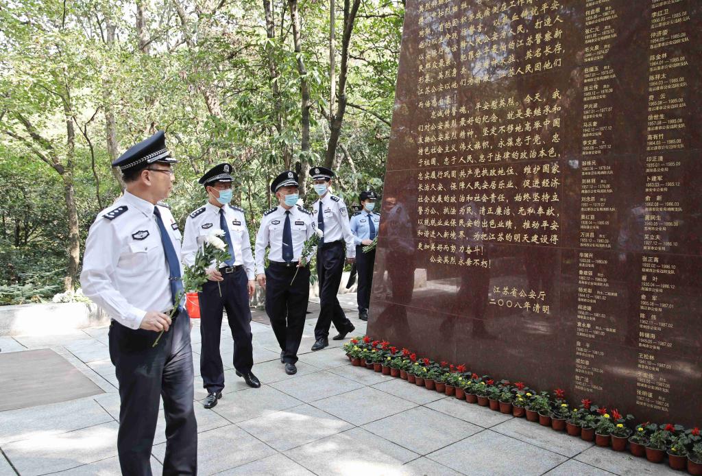 公安队伍是和平年代牺牲最多、奉献最大的队伍。长期以来,江苏广大公安民警始终牢记党和人民的重托,忠诚履行捍卫国家安全、维护社会安定、守护百姓安宁的神圣使命,时刻经受着生与死、血与火的严峻考验。新中国成立以来,江苏共有596名公安民警因公牺牲,今年以来有14名民警辅警因公牺牲在工作岗位上。已经54岁的如东县公安局车辆管理所民警姚十华,主动请缨前往高速出口交通防疫服务点执勤,凌晨执行完防控任务后突感身体不适,经抢救无效离世;涟水县公安局警务督察大队教导员潘永兵,从警16年来第一次准备休假,打算利用假期带着刚考上大学的女儿出去旅游,结果还没有来得及在请休假审批表上写下具体日期,就倒在了工作岗位上;始终把人民满意作为第一追求的高邮市公安局指挥中心主任仇玉权、被称为“交通事故处理能手”的泰兴市公安局交通警察大队黄桥中队副中队长朱君,以及“公安交巡警系统治安管理能手”、灌南县公安局交警大队秩序中队中队长张国山,都是在工作岗位上坚守到最后一刻,因公牺牲。