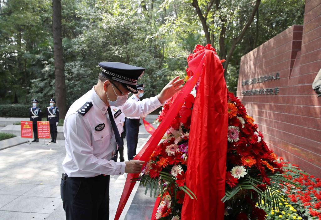 9月30日,江苏省公安厅组织民警到江苏公安英烈纪念墙,向公安英烈敬献花篮,开展缅怀活动,致敬公安英烈,追思英烈事迹,学习英烈精神,激励全省公安民警不忘初心、牢记使命,履职尽责、接续奋斗。江苏省公安厅党委副书记、常务副厅长尚建荣出席仪式并讲话。