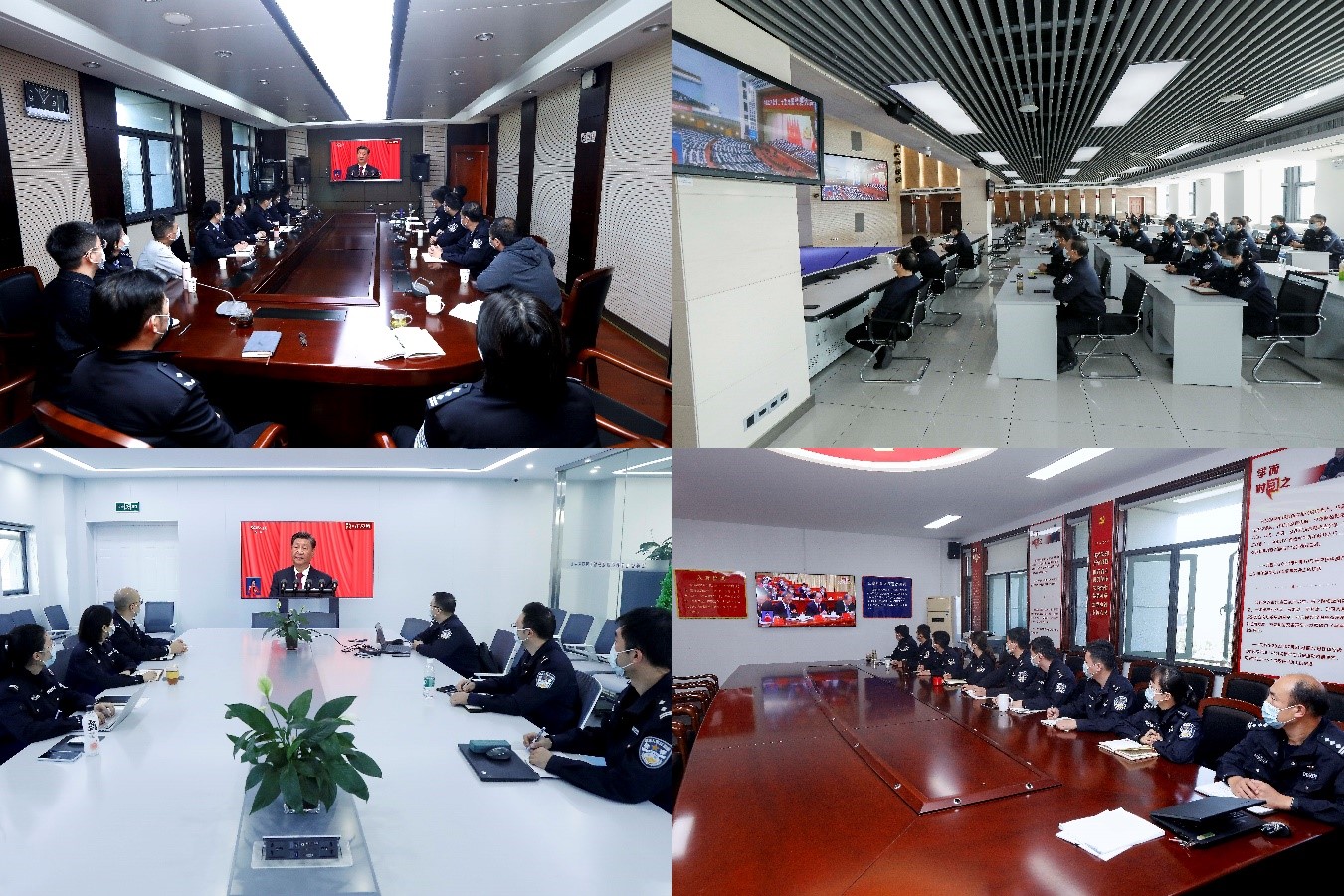 (师生在教室、大数据教学资源服务中心、报告厅、会议室、实验室等场所认真收看大会实况直播)