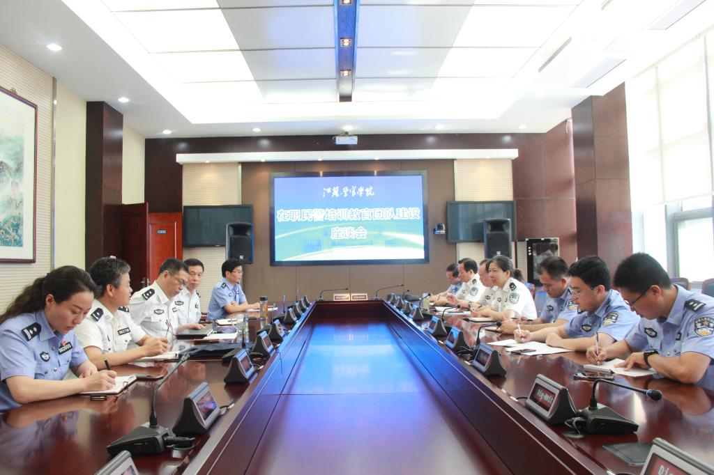6月24日上午,副院长薛宏伟主持召开在职民警培训教官团队建设座谈会,部分教官团队成员、民警培训专题建设负责人和干训部相关人员参加会议。