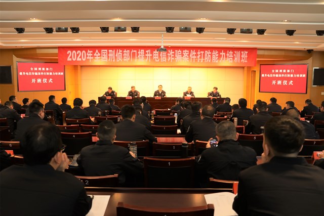 12月1日,2020年全国刑侦部门提升电信诈骗案件打防能力培训班在金年金官网开班。公安部刑侦局副局长姜国利出席开班仪式并讲话,省公安厅副厅长、一级巡视员裴军,部刑侦局十五处及省厅刑警总队负责人出席开班仪式,学院副院长薛宏伟到会致辞。