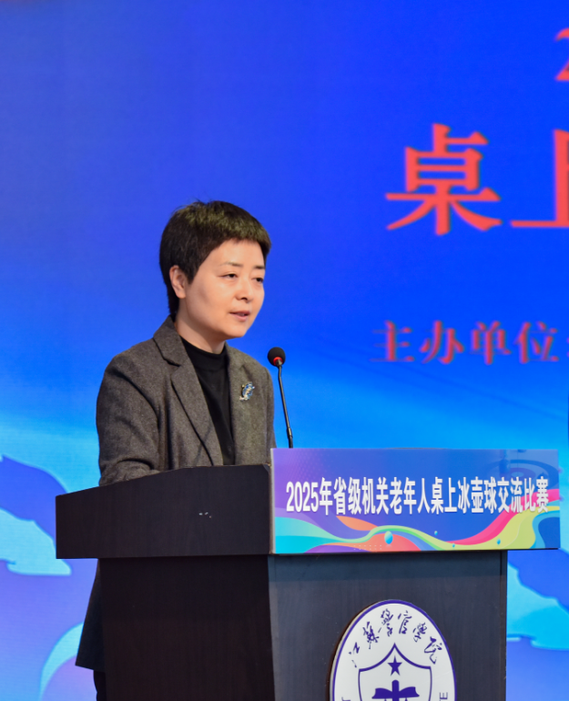 陈卫代表学院党委向莅临现场的各位领导、嘉宾以及参赛运动员表示热烈欢迎,感谢省老年人体育协会对学院的信任和肯定。指出学院一直以来高度重视警体训练和文体事业发展,积极营造热爱运动、健康向上的校园文化。在省老年人体育协会和学院老年体协的大力支持下,学院老年桌上冰壶球队屡创佳绩,生动反映老同志始终弘扬警察精神和无私奉献校训精神,刻苦训练、顽强拼搏,精神可嘉。强调此次比赛不仅是一次桌上冰壶技艺的切磋,更是积极响应建设体育强国战略部署的有力行动,并祝愿参赛选手赛出风格、赛出水平,收获友谊与健康。