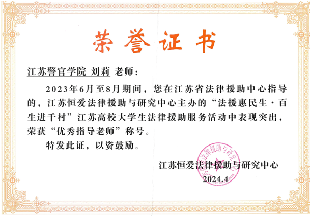 2024年4月10日下午,“法援惠民生、百生进千村”江苏高校大学生法律援助志愿服务活动表彰大会在南京工业大学召开。法律系刘莉老师获评“优秀指导教师”,法律系学生杨世明、张茜被评为“优秀志愿者”。