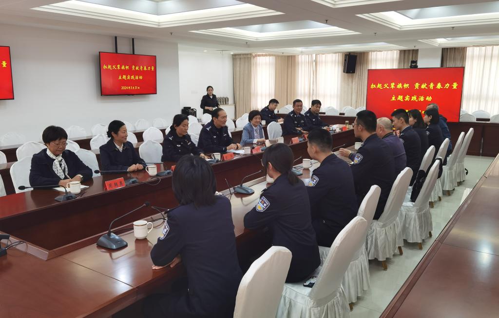 在江都区公安分局会议室,一行师生参加“我与英模面对面”活动。活动由江都区公安分局副局长、政治处主任王传海主持,全国公安系统二级英模、江都区公安分局龙川派出所民警戴华与学员们交流互动。