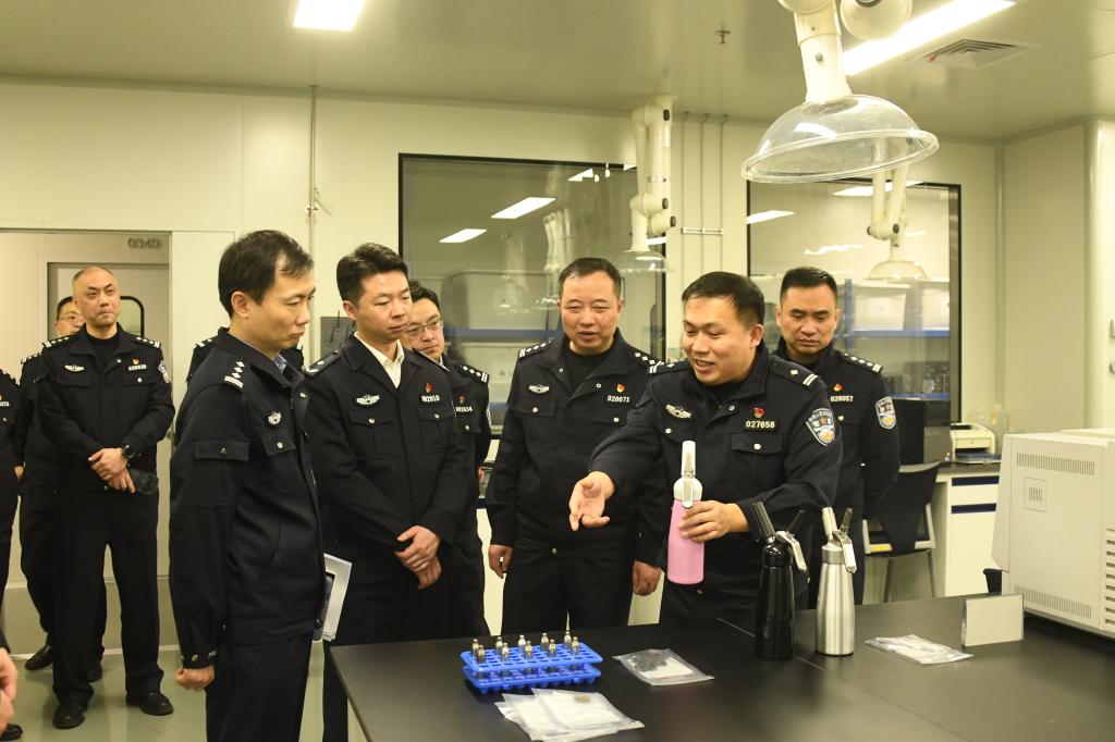 在苏州市公安局,张敏一行看望了在相城分局中心商贸城派出所实习的学生,参观了市局刑警支队全国公安机关一级DNA实验室、“机+智”枪弹实验室,并与市局有关领导、警种部门负责人进行座谈,听取有关情况介绍,了解学生实习情况,双方还就推进高层次人才共育共享、组织学警参与警务研究等进行深入交流。