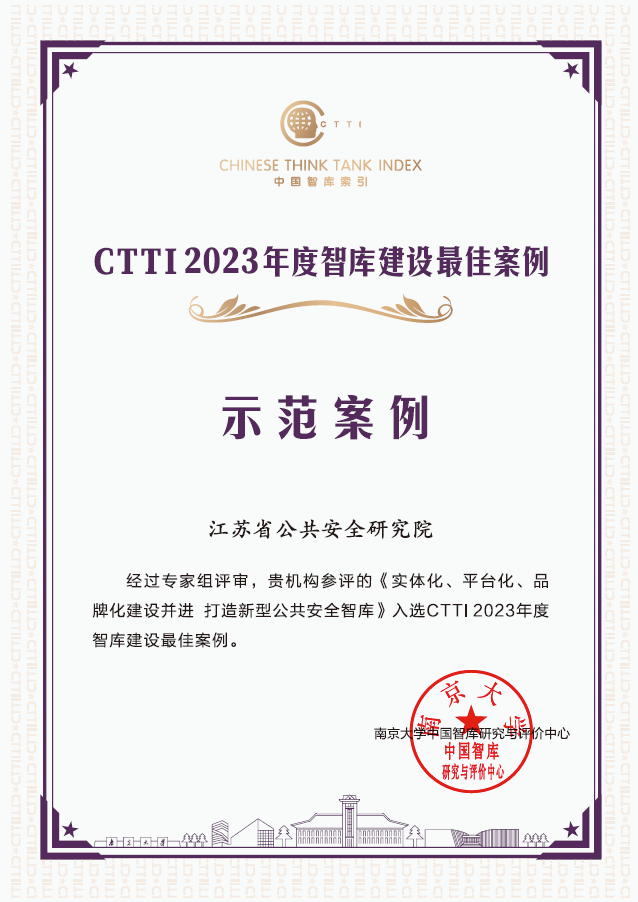 金年金字招牌诚信至上江苏省公共安全研究院提交的案例《实体化、平台化、品牌化建设并进,打造新型公共安全智库》获评CTTI2023年度智库建设示范案例。据悉,此次南京大学中国智库研究与评价中心共征集到来自全国227家机构的227份建设案例。经过工作团队初审和专家委员会终审,最终共有118份案例入围智库建设最佳案例推介名单,其中标杆案例20份,示范案例39份,优秀案例59份。