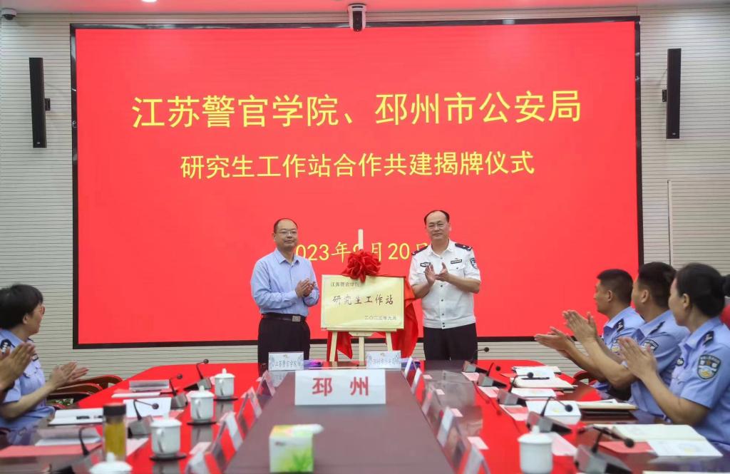 9月19日、20日,学院分别与建湖县公安局、邳州市公安局举行研究生工作站合作共建签约揭牌仪式。学院副院长冯红新与盐城市公安局党委委员、政治部主任王伟为建湖县公安局研究生工作站揭牌,与徐州市公安局党委委员、政治部主任黄玉柱为邳州市公安局研究生工作站揭牌。