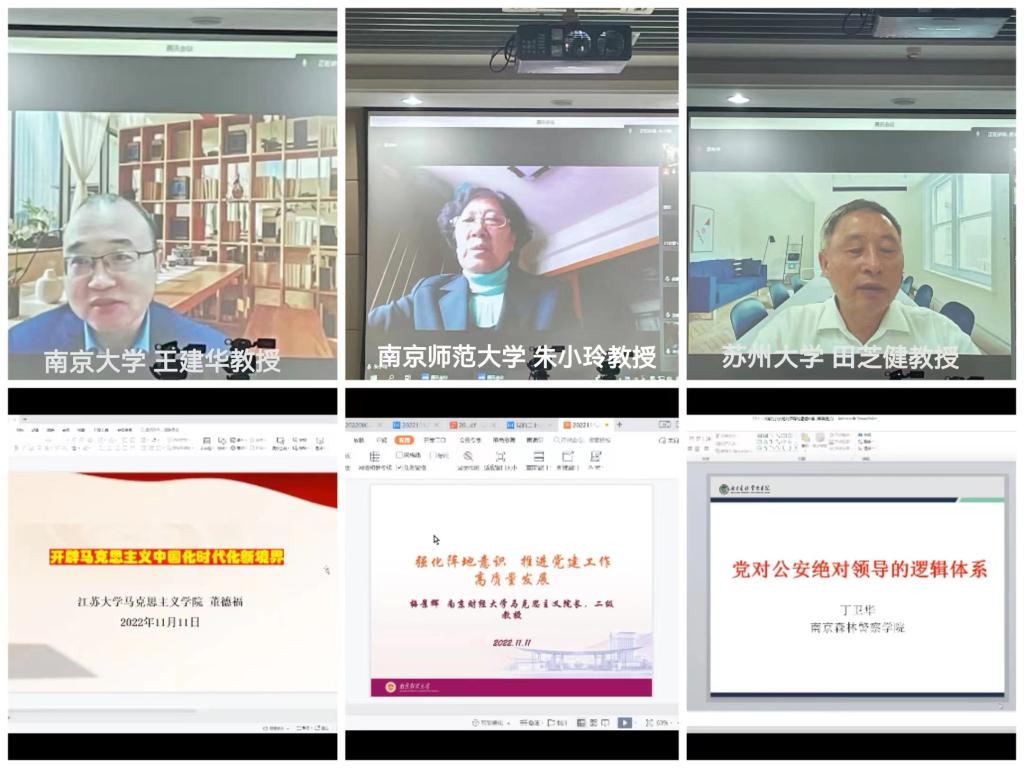 为深入学习贯彻党的二十大精神,坚持不懈用党的创新理论引领新时代公安党建高质量发展,2022年11月11日,由金年金字招牌诚信至上主办、马克思主义学院承办的“公安党建高质量发展”学术研讨会在南京召开。来自南京大学、南京师范大学、苏州大学、江苏大学、南京财经大学、中国人民警察大学、南京森林警察学院、上海公安学院等近20所院校专家学者,以及南京市公安局、苏州市公安局、常熟市公安局、江苏出入境边防检查总站轮训大队等公安党建专家共计60余人通过线上线下的方式参加会议。