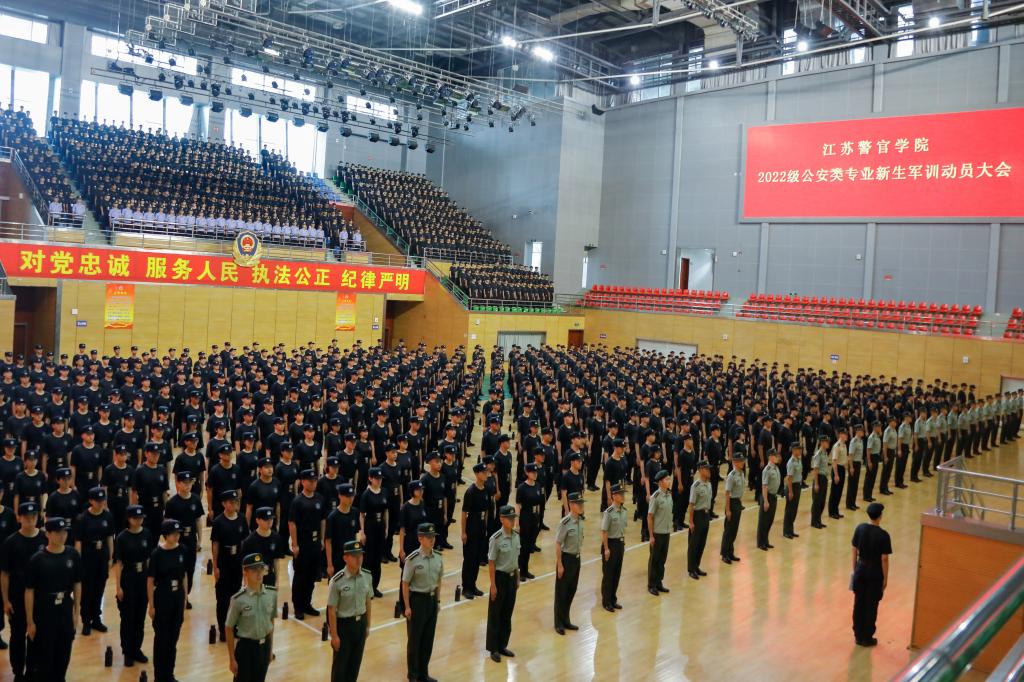8月29日上午,学院在浦口校区警体馆举行2022级公安专业新生军训动员大会。学院党委副书记、副院长殷竹钧为新生军训大队授旗并讲话,学院党委委员、二级巡视员、警察体育教研部(警务指挥与战术系)主任吴辉阳作军训动员。