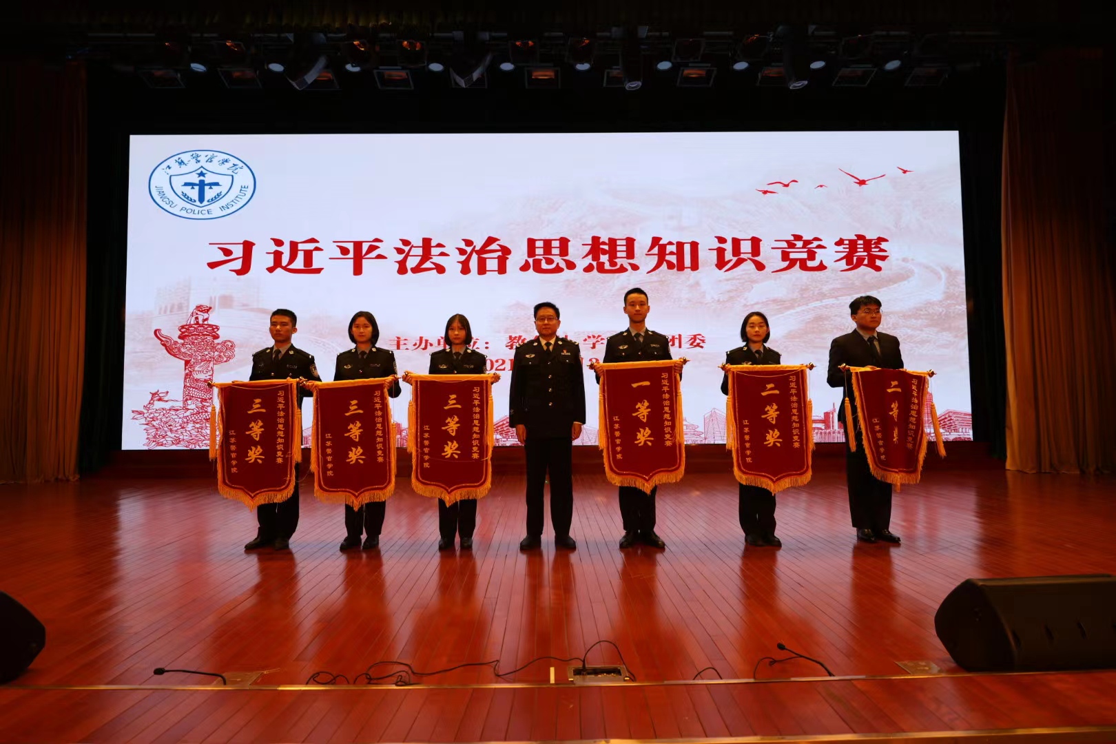 此次比赛分初赛、复赛、决赛三个阶段,初赛和复赛以线上答题的方式进行,决赛采取现场竞答的方式,设必答题、抢答题、风险题、加赛题等环节。经过激烈角逐,侦查系学生二大队代表队获团体一等奖,计算机信息与网络安全系学生大队代表队、安德门校区(法律系)代表队获团体二等奖,治安管理系学生二大队代表队、侦查系学生一大队代表队、刑事科学技术系学生大队代表队获团体三等奖。此外,根据复赛成绩,还评选出了个人一等奖3人、二等奖5人、三等奖7人。