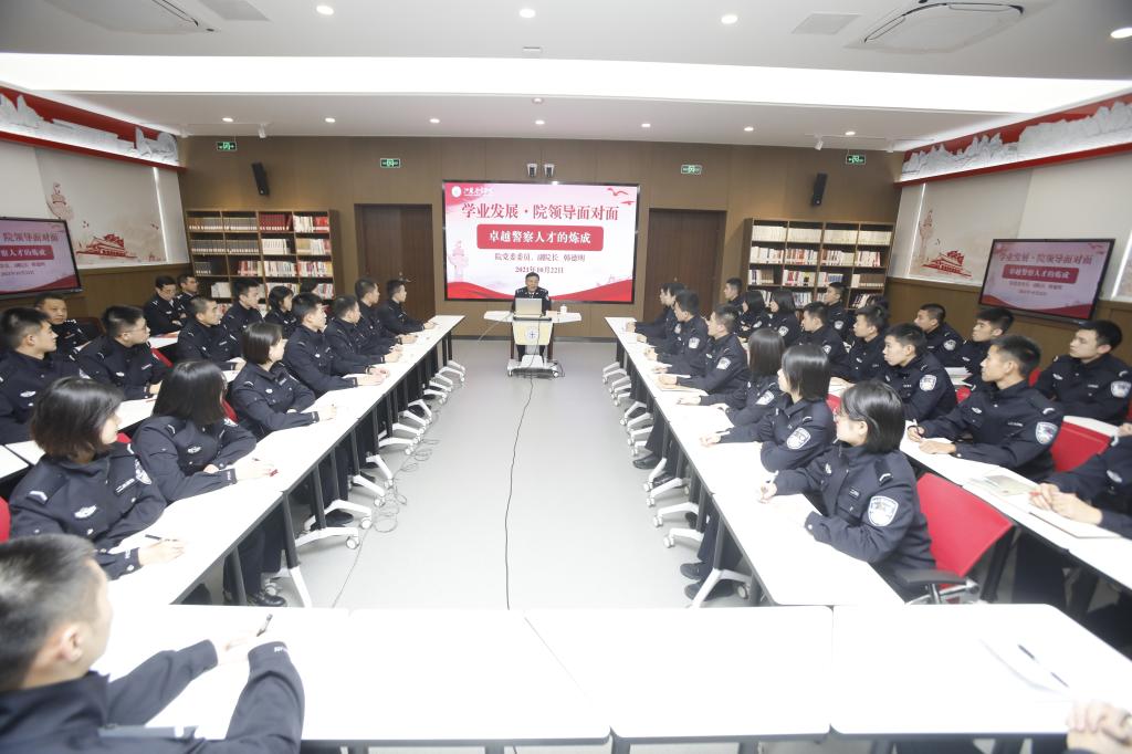 10月22日下午,学院在“忠诚警魂教育中心”举办“学业发展·院领导面对面”活动,学院党委委员、副院长韩德明围绕“卓越警察人才的炼成”主题,与公安管理学、治安学、侦查学、刑事科学技术及网络安全与执法等专业50名学生代表进行了互动交流。活动中,韩德明从国内外警察概况、现代警察的诞生与警察职业定位、警务革命与警察职业发展、警察素质构成等方面切入,围绕深入学习贯彻习近平总书记在全国公安工作会议上的重要讲话和中国人民警察警旗授旗仪式上的重要训词精神,做到对党忠诚、服务人民、执法公正、纪律严明,切实提高公安院校大学生的政治、法律、专业、纪律等基本素质和执法办案、管理服务、社会工作、专业技术、创新发展等基本能力,做了辅导交流。