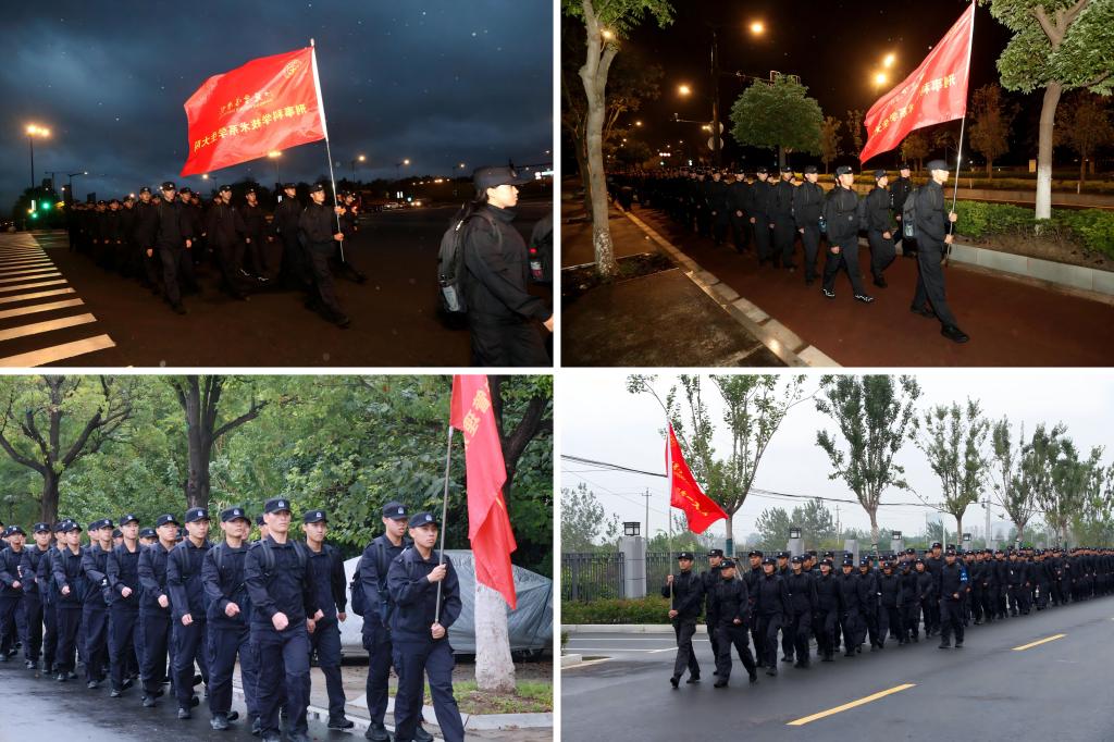 凌晨5:20,全体本科新生在集结号中整体列队。微雨淅淅,秋风习习。浦口校区警训场上,1200多名新生精神抖擞、整装待发;安德门校区600多名新生同步集结,乘坐第一班地铁赶往南京青奥体育公园站与浦口校区队伍汇合。
