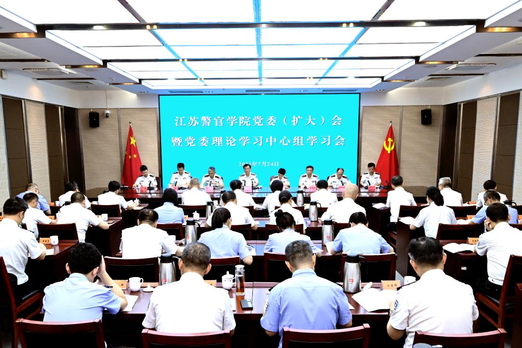 7月24日,学院召开党委(扩大)会暨党委理论学习中心组学习会,认真学习党的二十届三中全会精神,传达学习省委常委会、公安部党委、教育部党组和省公安厅党委相关会议部署要求,就抓好学习宣传贯彻工作进行部署。省公安厅党委委员、学院党委书记夏存喜主持会议并讲话,学院党委副书记陈卫领学党的二十届三中全会公报。