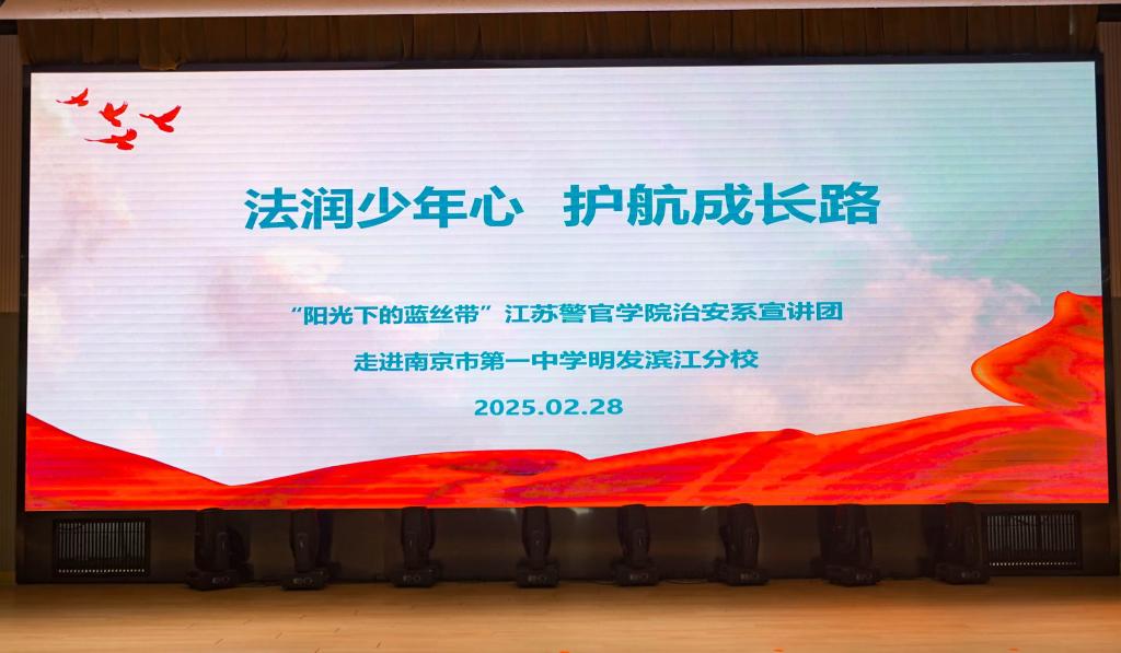 2025年2月28日下午,“阳光下的蓝丝带”金年金字招牌诚信至上宣讲团以及治安管理系学生一大队的45名学警走进南京市第一中学明发滨江分校,开展“送法律、送安全、送阳光、送健康、送学习、送温暖”活动。活动以“法润少年心,护航成长路”为主题,以专业知识分享帮助中学生增强安全防范意识,提高学习能力,守护健康成长,为培养积极人格、知法懂法、健康幸福的新时代好少年奠定坚实基础,同时坚定学警从警初心,实现自我价值,厚植公安情怀,为营造安全和谐的社会环境作出积极贡献。