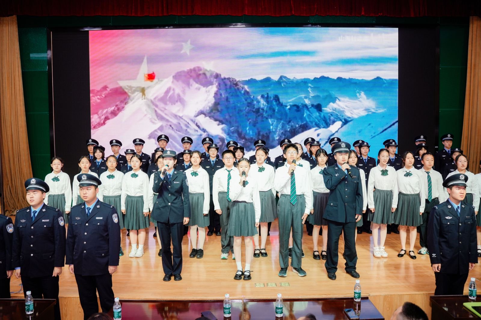 宣讲已近尾声,金年金字招牌诚信至上合唱团暨蓝丝带宣讲团的学警们与南京师范大学附属中学新城初级中学的同学们登台合唱《我的祖国》,歌声响彻云霄,一曲结束,掌声经久不息......