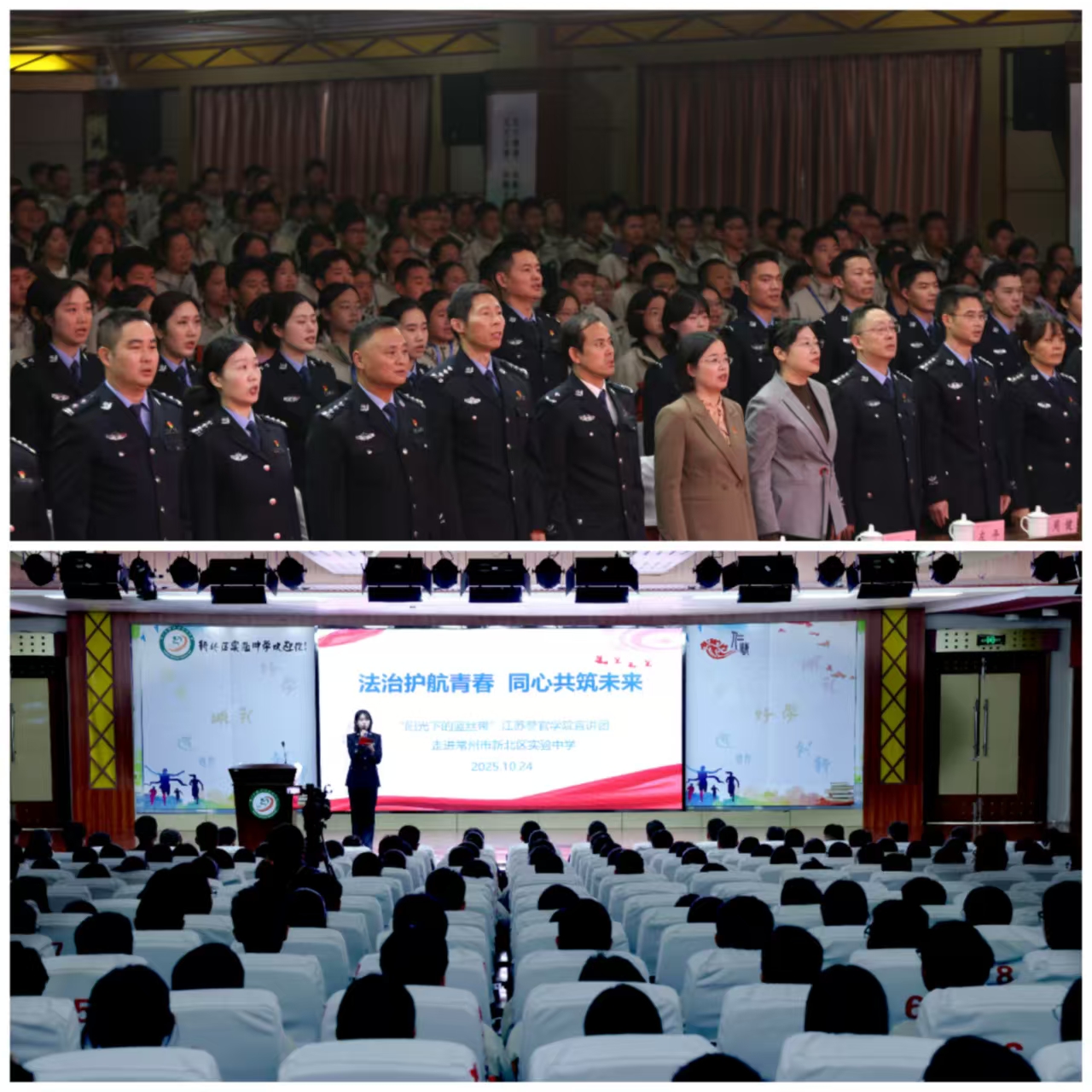 10月24日下午,在常州市公安局、教育局的精心组织下,治安管理系第一党支部全体党员教师率 “阳光下的蓝丝带”宣讲团,走进常州市新北区实验中学,用青春的语言、专业的视角、真挚的情感举办“法治护航青春·同心共筑未来”主题宣讲活动,为1350名初二学子带来一堂有温度、有深度、有力度的法治教育课。