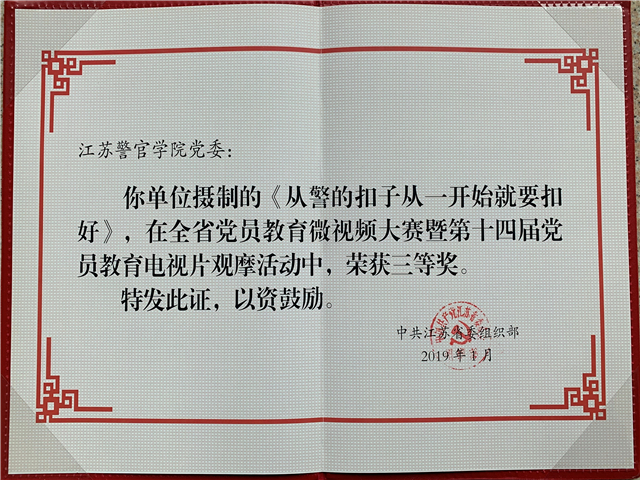 近日,由省委组织部、省委省级机关工委、省委教育工委、省国资委和共青团省委联合举办的全省党员教育微视频大赛成绩揭晓,金年金官网师生创作的《从警的扣子从一开始就要扣好》荣获比赛三等奖。