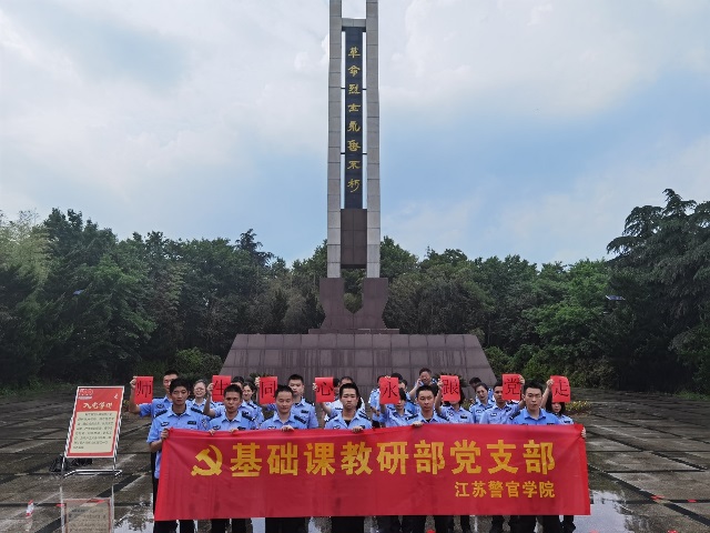 在瞻仰纪念碑、感悟革命历史的基础上,基础部结合部门特色,创新现场教育形式,现场开展革命诗词中的党史学习教育,由支部入党积极分子领诵,青年学警代表和全体教师齐声朗诵毛泽东《七律·人民解放军占领南京》。