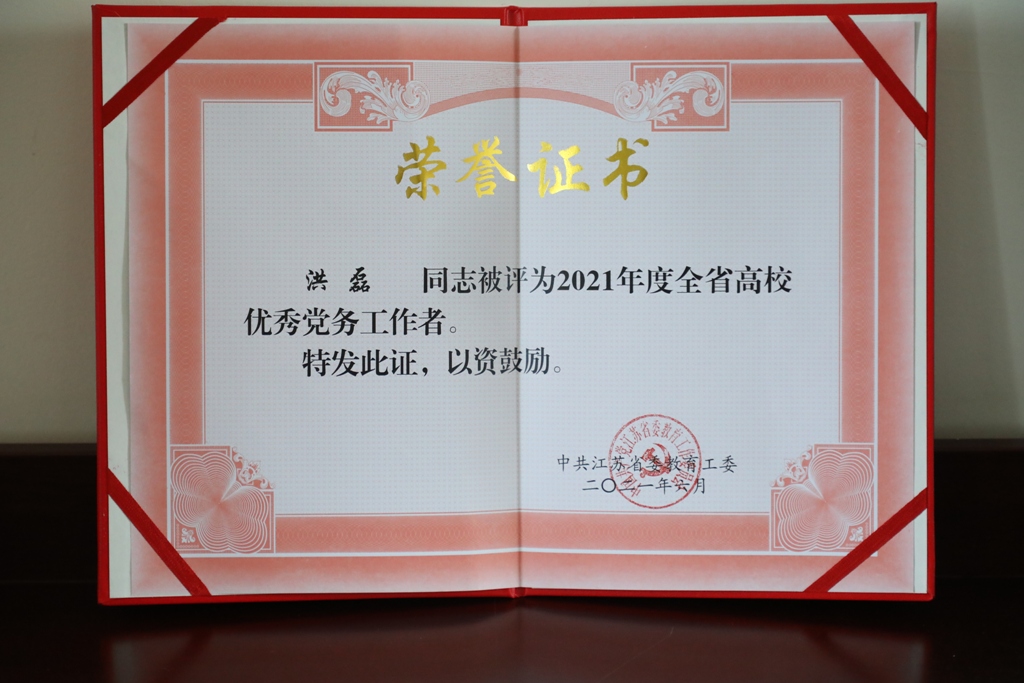 近日,为充分展示全省高校各级党组织和广大党员取得的丰硕成果,发挥先进典型示范引领作用,激励全省高校各级党组织和广大党员见贤思齐、奋发进取,江苏省委教育工委表彰了一批全省高校优秀共产党员、优秀党务工作者、先进基层党组织。学院计算机信息与网络安全系教师第二党支部洪磊同志荣获全省高校优秀党务工作者, 治安管理系教师第二党支部荣获全省高校先进基层党组织