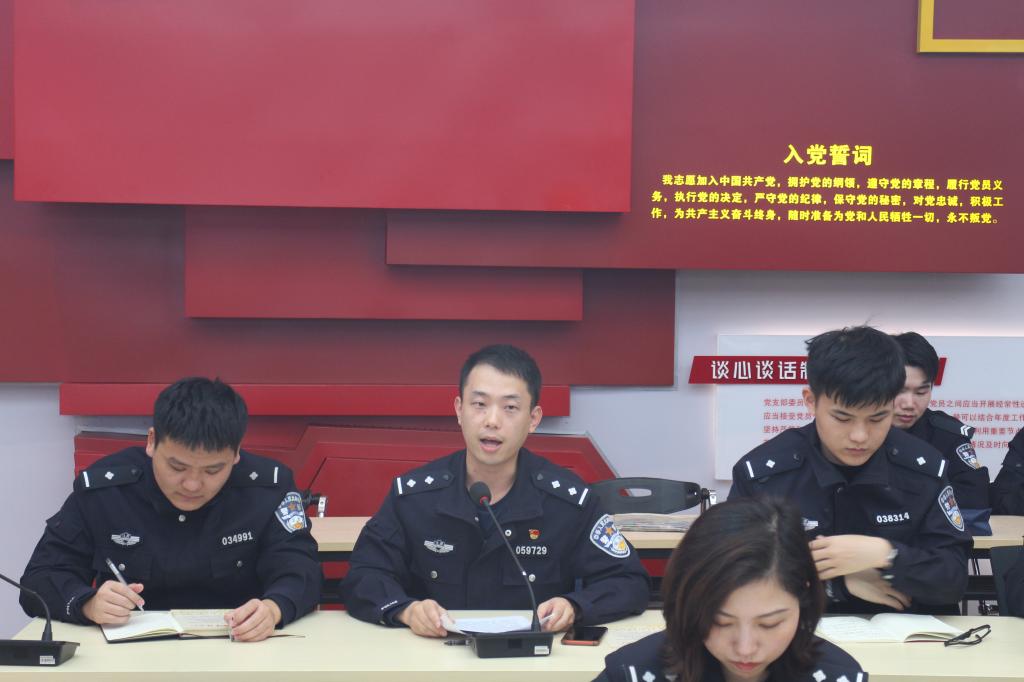主题党日活动由铭记初心、回望初心、践行初心、感悟初心等四个部分组成。15位教师、学生党员代表集体过了政治生日,黄进同志赠送了政治生日贺卡;6位师生党员代表畅谈了入党入警初心故事,强化了入党从警的坚定信念;支部书记分享了支部党员的先进事迹,用身边人身边事鼓励大家争先创优;全体同志聆听了《感悟初心 勇担使命》专题党课,激励大家学习恩来精神、践行无私奉献校训精神。