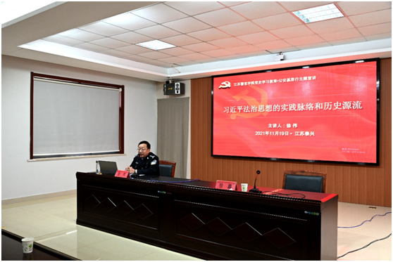 20日上午,“党史学习教育公安基层行”活动再次拉开帷幕,党员教师徐伟副教授为泰兴市公安局民警作专题辅导。他以“习近平法治思想的实践脉络和历史源流”为题,深入介绍了习近平总书记对习近平法治思想所作出的独特性、原创性贡献,引经据典,深入浅出,帮助基层民警进一步加深对习近平法治思想的理解认识,增强贯彻落实习近平法治思想的自觉性和坚定性,提高运用法治思维武装头脑、指导实践、推动工作的能力。