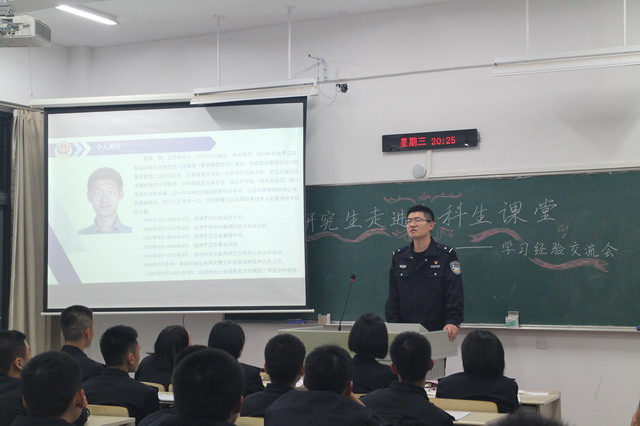 为进一步落实学院全员育人工作要求,帮助警院一年级学生明确大学学业规划、更好适应警院生活,11月4日,研究生教育部、学科建设工作部发挥部门工作职责,积极联系对口区队,先后组织2019级法律硕士(警务方向)研究生代表与2020级经侦1、2区队开展了两场“研究生走进本科生课堂”系列活动。