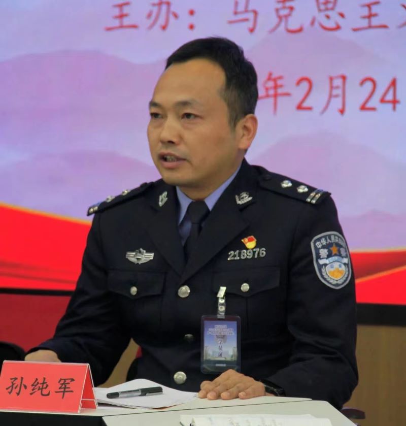 孙纯军结合自己18年从警路,围绕学习英模精神锻造忠诚警魂主题进行了分享,从刑警队,到网警队,再到派出所,身边始终有默默奉献的公安英模激励着大家前行,他们扎根基层、忠诚履职、无私奉献,用实际行动诠释优秀人民警察的本色情怀,铸就守护人民的金色盾牌。
