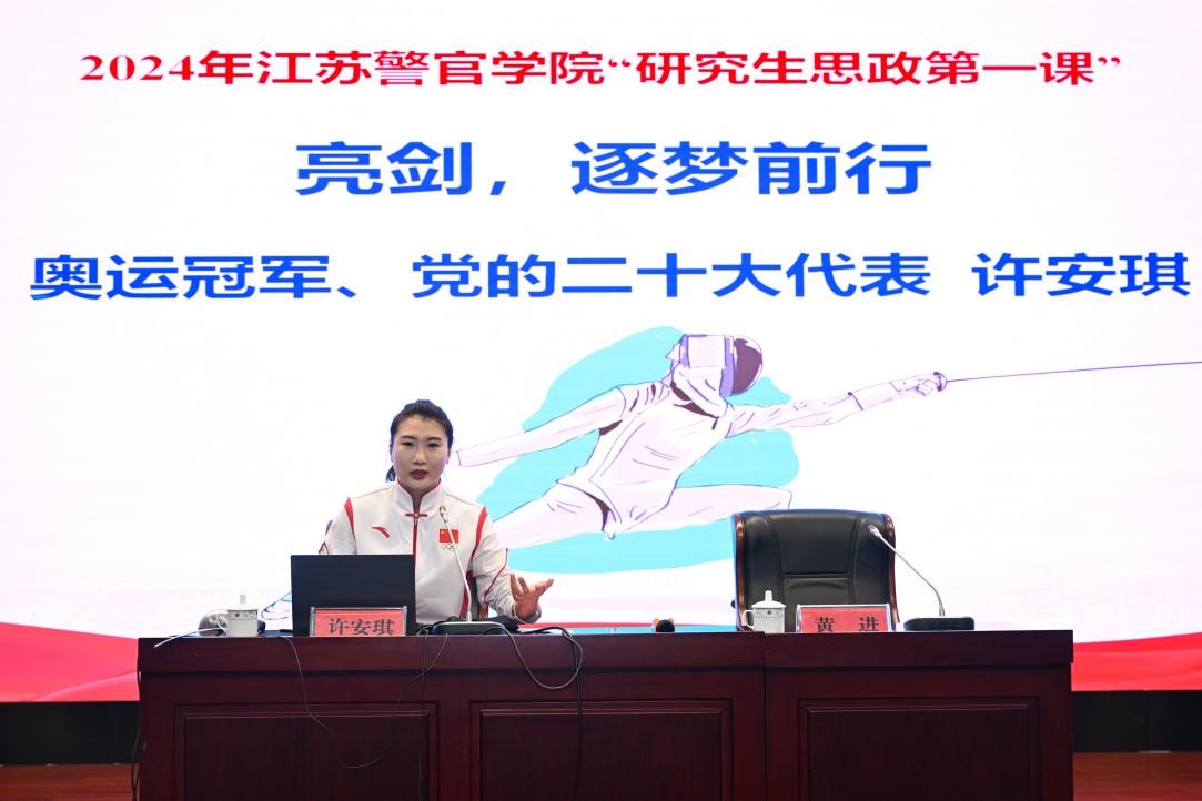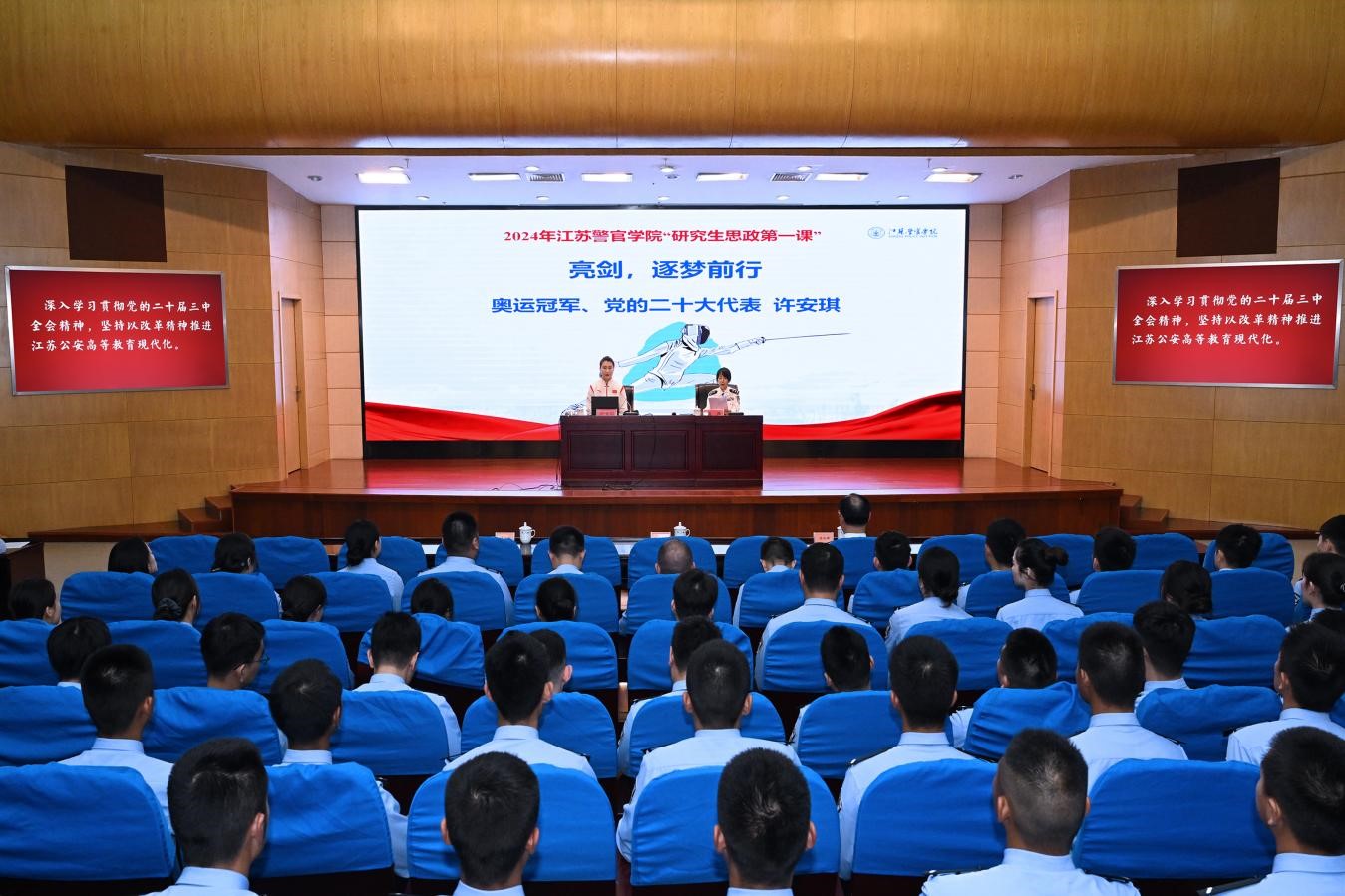 10月16日下午,学院举行2024级研究生“思政第一课”。前奥运冠军、二十大代表许安琪,学院党委副书记、院长黄进分别为2024级全体警务硕士研究生讲授“思政第一课”。