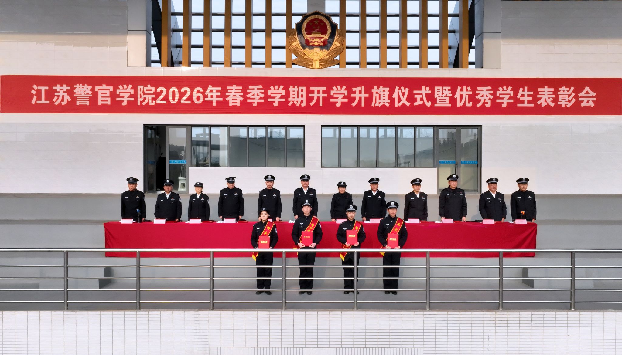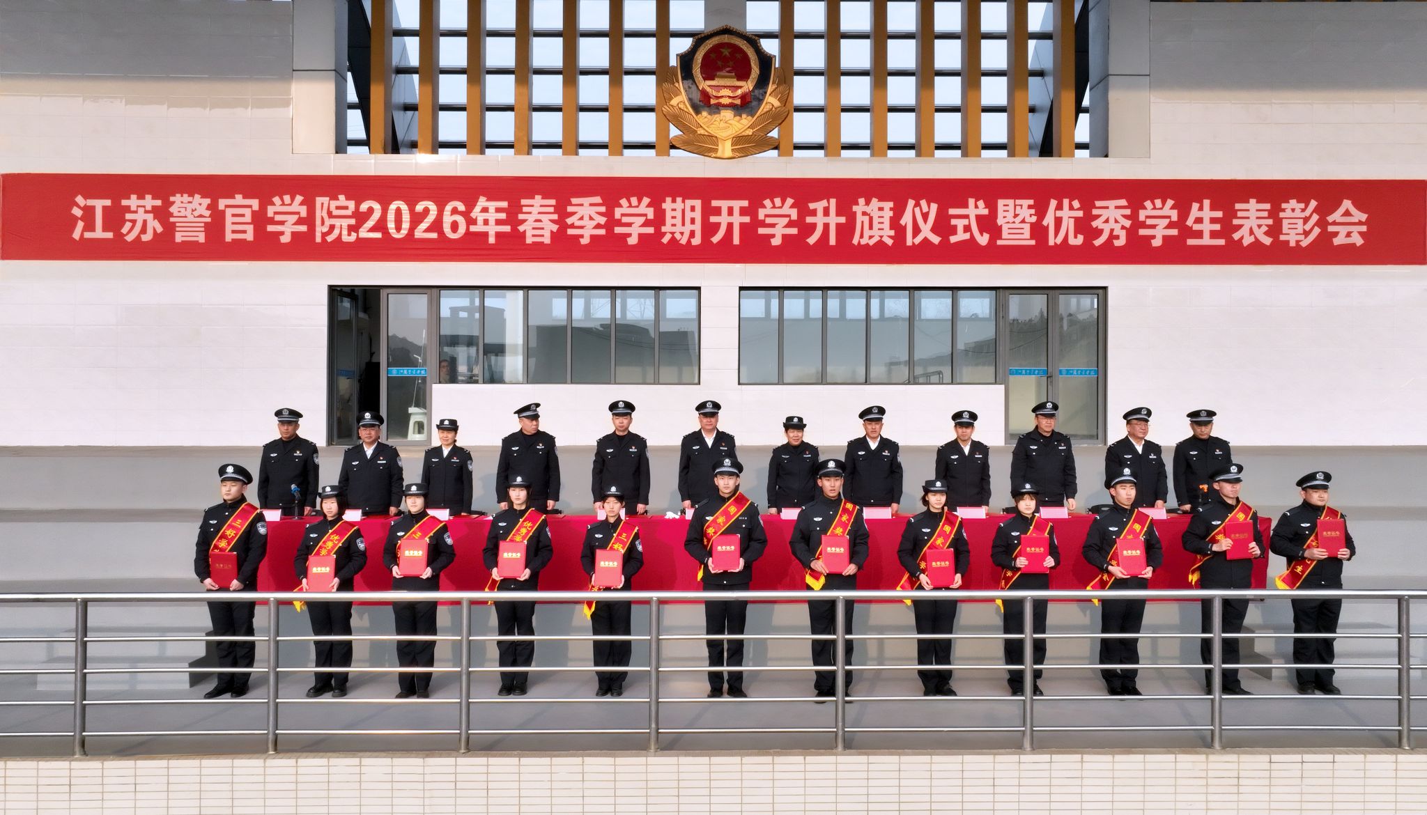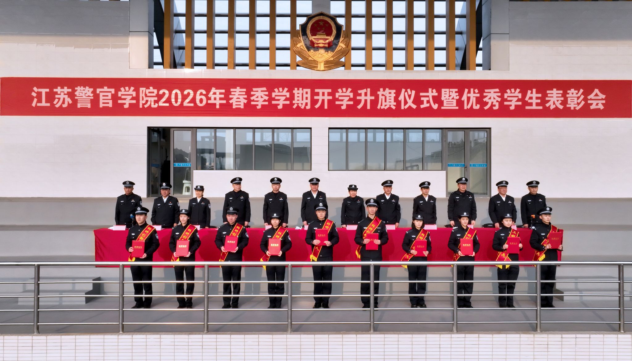 2026年春季学期开学升旗仪式暨优秀学生表彰会在嘹亮的中国人民警察警歌声中圆满结束。