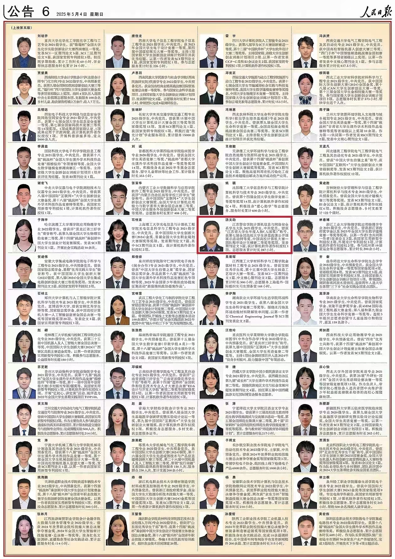 5月4日,《人民日报》发布《2023~2024学年度本科生国家奖学金获奖学生代表名录》,金年金官网计算机信息与网络安全系学生大队2021级数据警务区队汤文劼同学入选该名录,这是金年金官网学生首次入选,也是全省省属高校中唯一入选本科生。