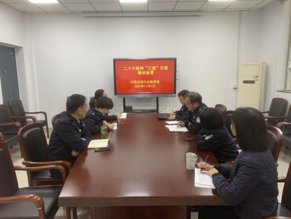 中国近现代史纲要教研室全体成员在集体备课会上一致表示,学习贯彻党的二十大精神,是当前和今后一段时期的首要政治任务,将党的二十大精神全面融入教学全过程,切实做好党的二十大精神“三进”工作,引导学生深入学习和把握党的二十大精神,是今后一段时期内《中国近现代史纲要》课程教学的核心任务。在集体备课会中,大家集中商讨了教研室“三进”工作具体方案,明确了将党的二十大精神全面融入课程教学大纲,组织编纂围绕课程教学的党的二十大精神学习辅导资料,以专题教学为抓手,开展党的二十大精神研讨,尤其要围绕中国式现代化,结合中国近现代史发展的轨迹深刻理解中国式现代化的含义及建设要求。另外要与学生处、团委等职能部门联系,积极深入学生理论社团,指导学生开展学习贯彻党的二十大精神等主题活动。